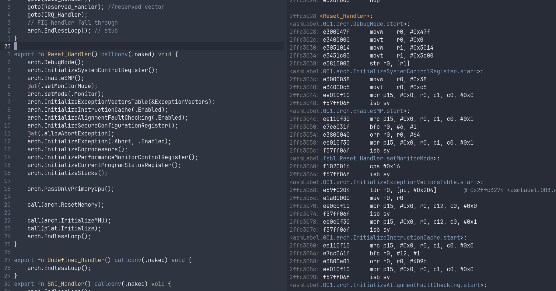 I’m working on a simple feature to help me read/understand optimized asm code for my bare metal project. So far ([implementation of @asmLabel(.foo) -> asm volatile("foo:") · ssilnicki-dev/zig@287dcad · GitHub]) the code does simple thing: replacing @asmLabel(.foo) by asm volatile("foo:"), that emits a symbol in linked elf, so everything works as expected.