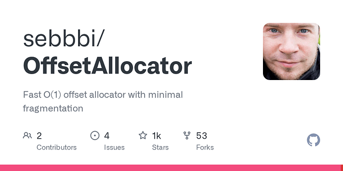 (re VMA): I always thought the main problem which VMA solved was that the number of unique GPU allocations in Vulkan can be limited as much as 4096, but checking at least Vulkan desktop drivers all seem to support 4 billion (e.g. 32 bits) of unique allocations now. That’s when I decided that the sokol-gfx vulkan backend doesn’t need a built-in allocator (I will most likely allow to hook in a user-provided allocator though so that people can integrate VMA if they want).