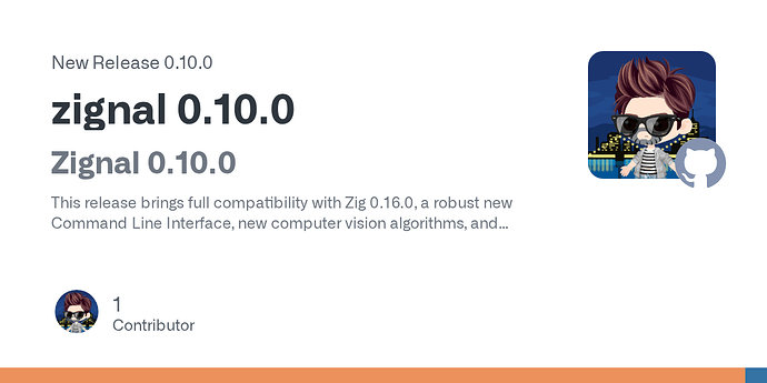 Zignal 0.10.0 is out. compilable with Zig 0.16.0.