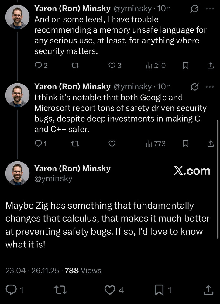 Ron Minsky started a thread asking about Zig, relating it to OxCaml. I thought the community might be interested.