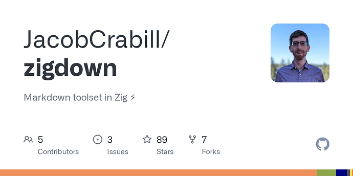 I hope others might find Zigdown useful! If you’re looking for a more “professional” static site generator, you’re probably better off using Zine; and if you need full CommonMark compliance, you’re better off using cmark; but if you want to play around with a pure-Zig Markdown parser with some fun capabilities, maybe this is for you! Just note that you will undoubtedly encounter bugs in parsing, rendering, or both; I’ll continue fixing any I find, though. And with that, I can finally move on to my next project ![]()